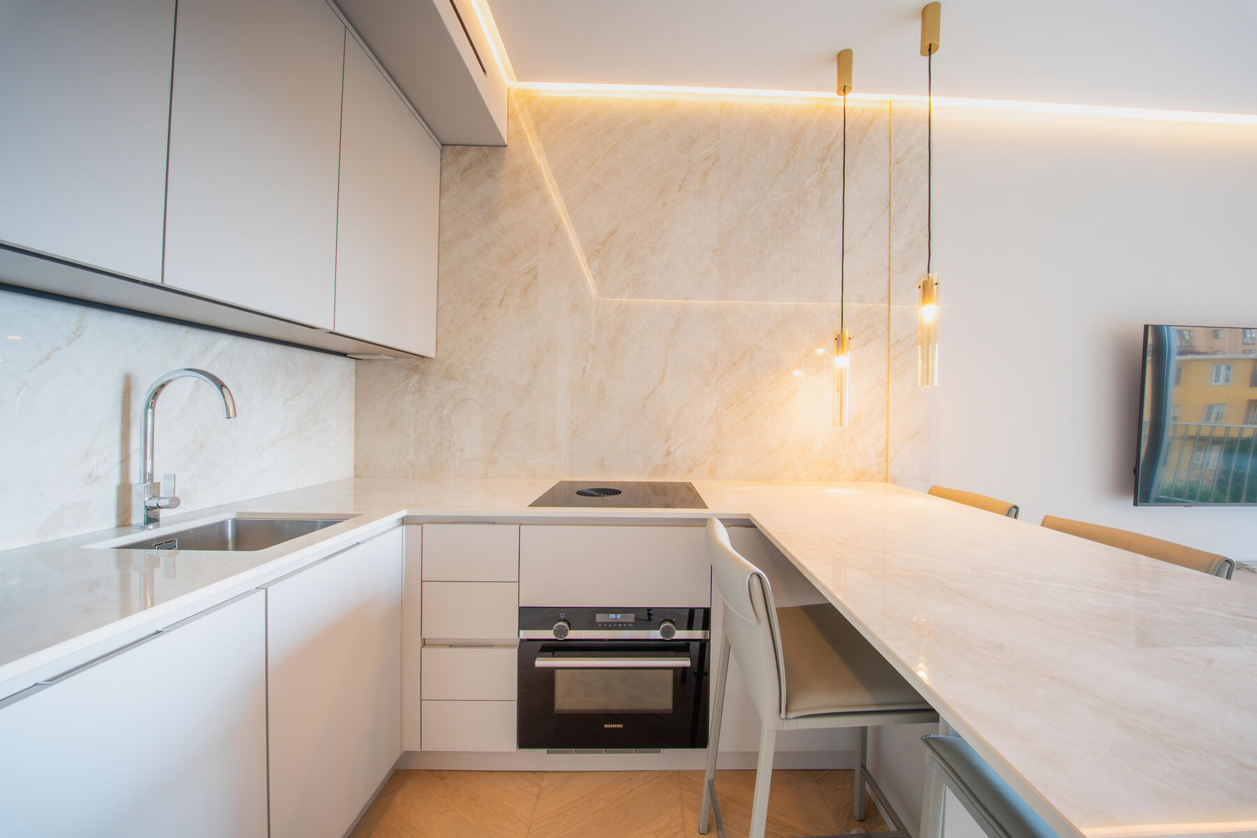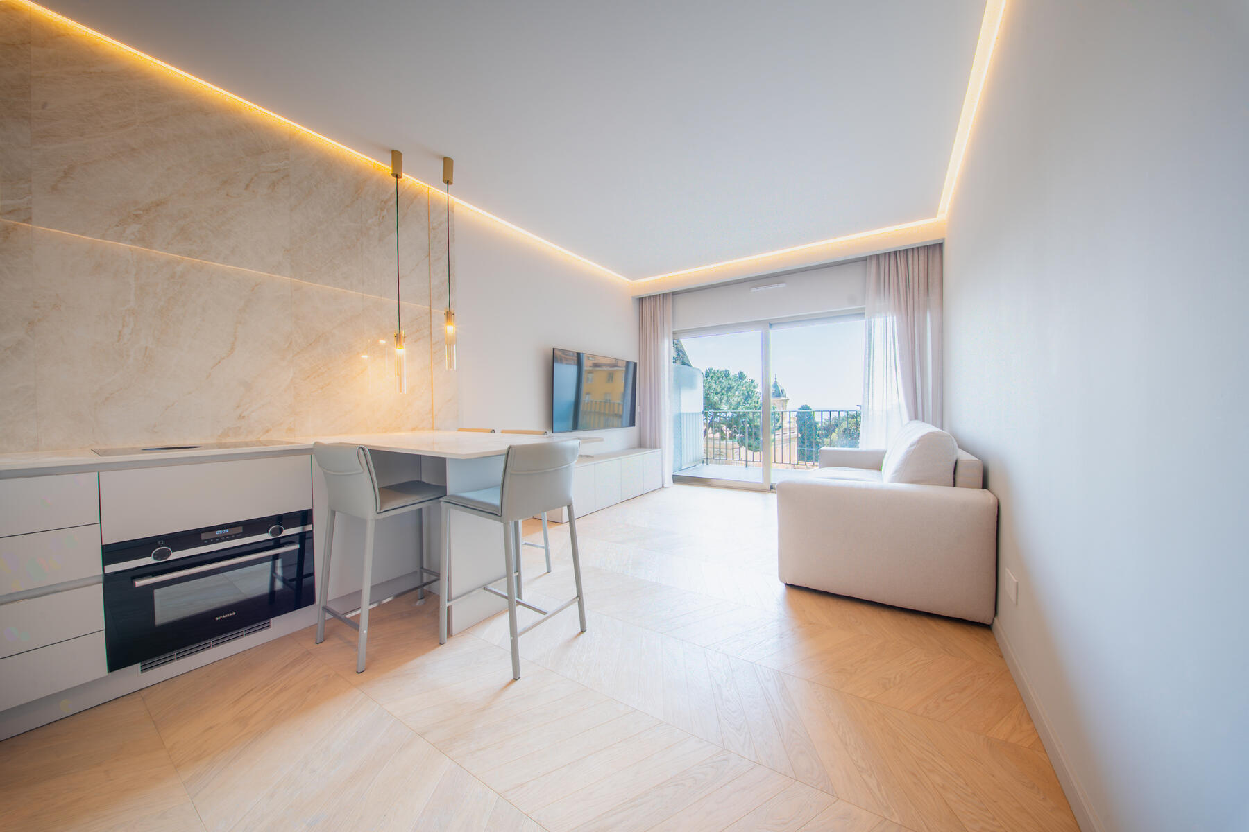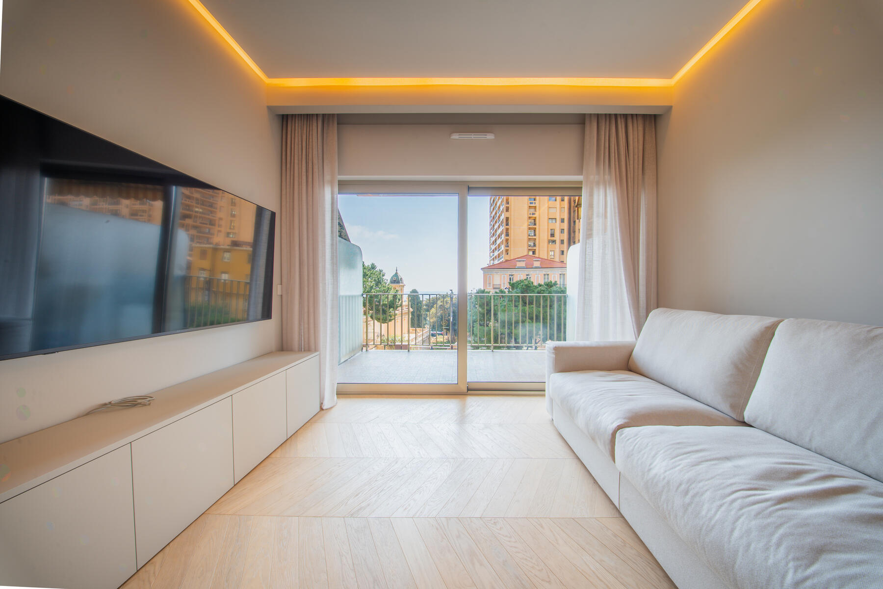 This fully renovated apartment is offered for rent tastefully furnished and perfectly equipped. Ideally located near the new Mareterra district, the Larvotto beaches and the Place des Moulins (easily accessible via public lifts), it enjoys a privileged and central location. It consists of an entrance, a bright living room with fully equipped open kitchen, extended by a dining area opening onto a pleasant terrace. The night area offers a master bedroom with storage space and en-suite shower room, as well as a second bedroom with wardrobe and access to a balcony. A second shower room completes the set. A large cellar and a parking space complete the rental.