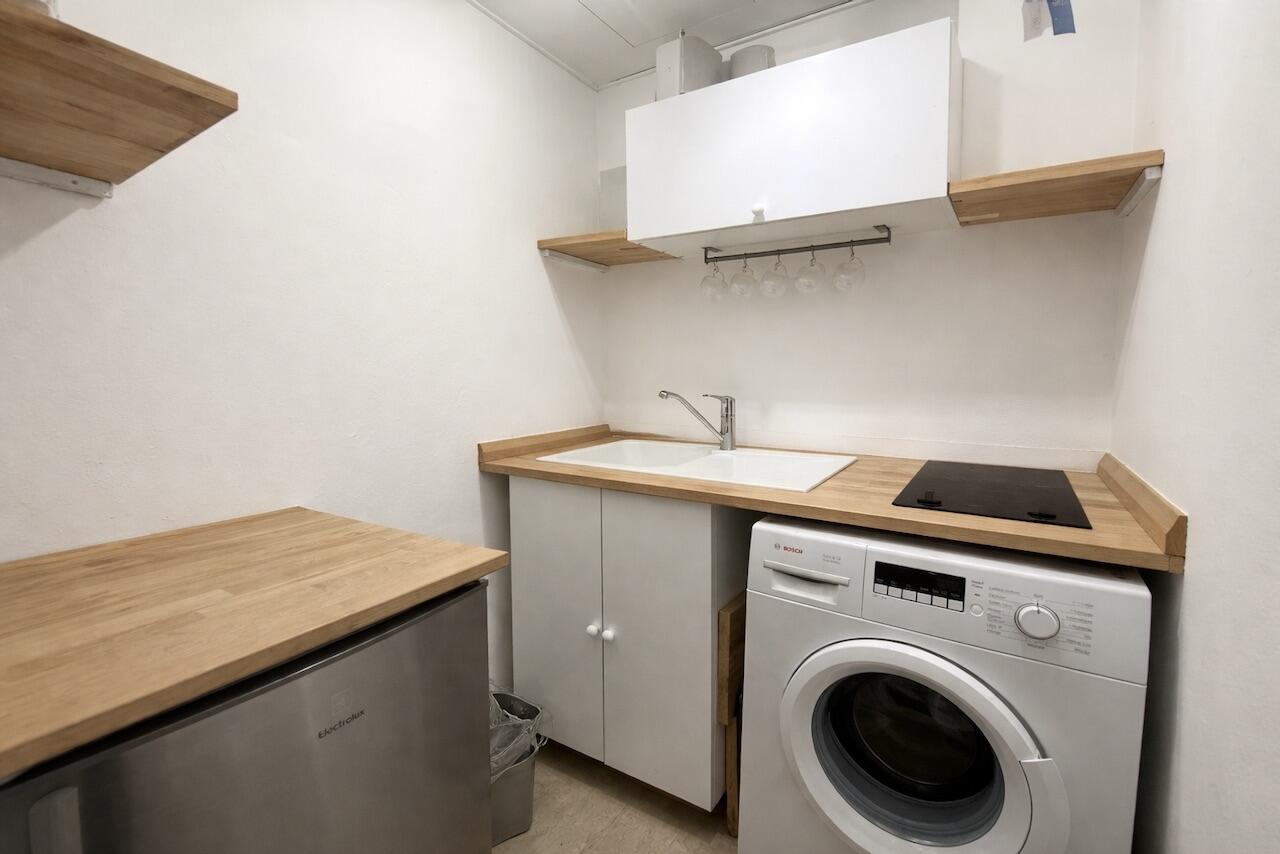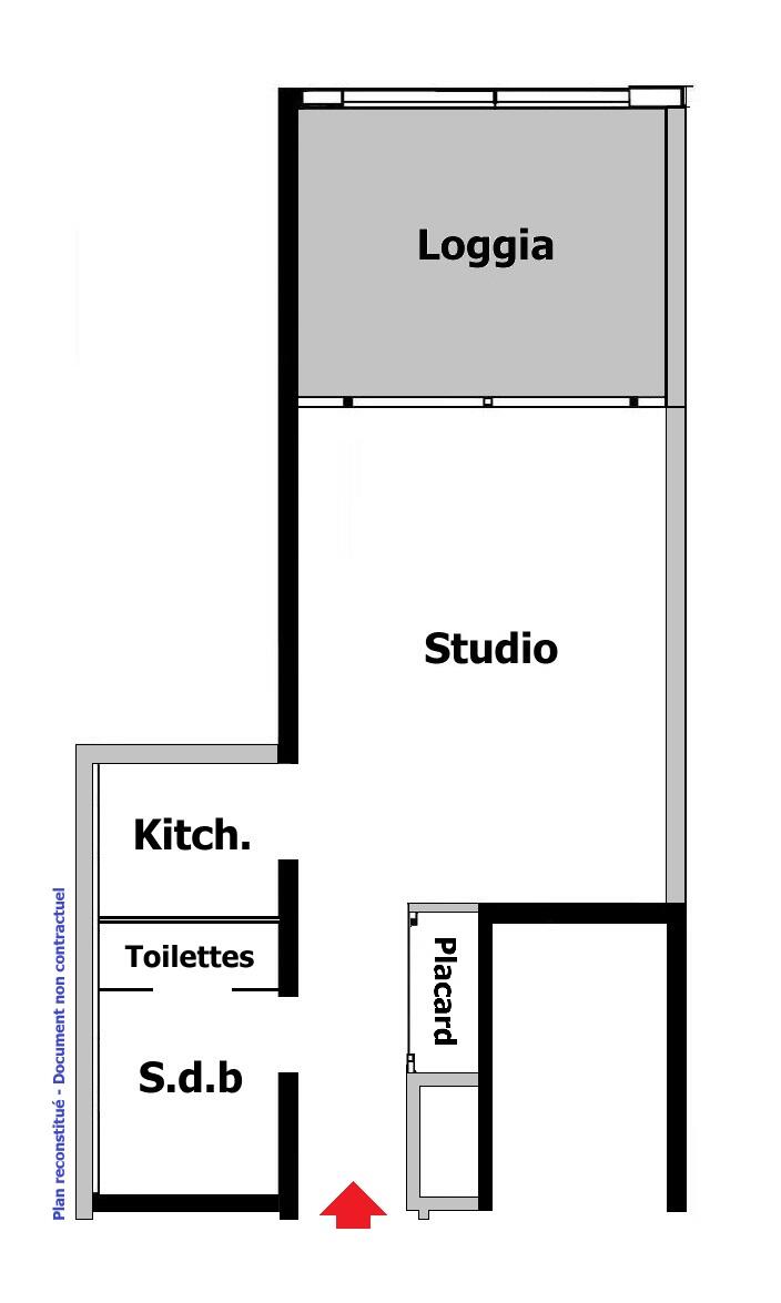 Entrée avec placard, séjour, kitchenette équipée, salle de bains complète, loggia, climatisation, double vitrage