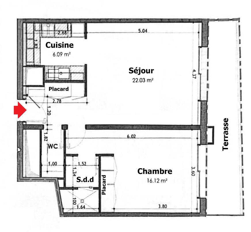 Entrée, spacieux salon, cuisine entièrement équipée, chambre avec placard, salle de douche, toilettes indépendant, terrasse, climatisation, double vitrage